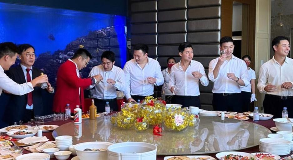 另外还有一组关于他们一起在婚宴上相互敬酒的画面,据知情者透露,每一位出现在宴会上的公子哥都是属于身价超亿元级别的家族企业继承人,每一位都帅气十足。