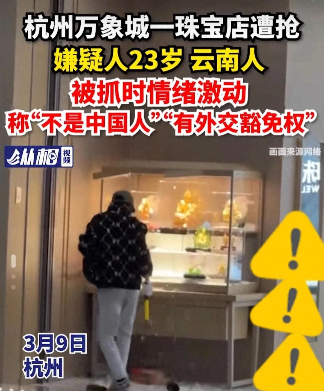 昨天,发生在杭州万象城一男子公然持铁锤打砸进店,抢劫黄金。现场一片混乱。在该男子抢劫逃离仅仅9分钟后就被警方抓捕归案。被抓时还高喊“我有外教豁免权”。难道拥有外交豁免权就可以免除刑事责任吗?答案肯定是否定的。