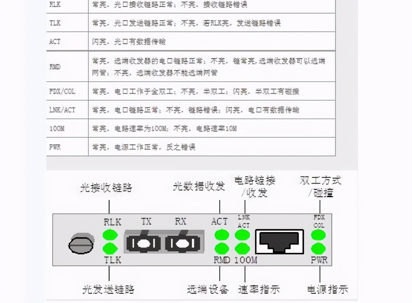 光纤收发器指示灯的意义